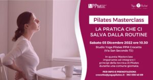 In questa Masterclass di sabato 03 dicembre nello Studio Yoga Pilates PPM Studio Crocetta impariamo ad integrare i principi della tecnica di pilates durante una comune giornata per attivare un dialogo con il nostro corpo e raggiungere un benessere quotidiano.