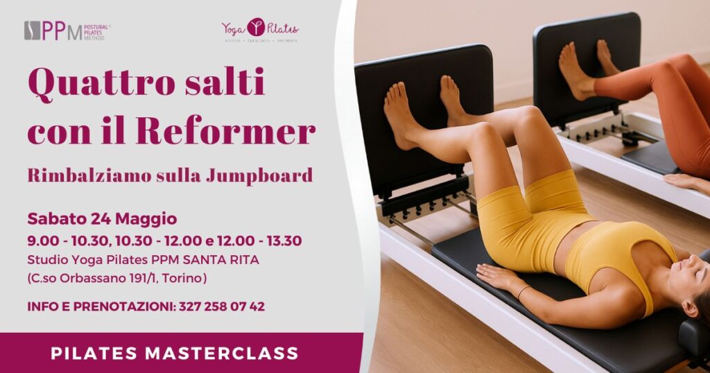 Sabato 24 maggio ti aspettiamo allo Studio Yoga Pilates PPM Santa Rita di Torino per un Seminaro Pilates in cui cui ci eserciteremo con la Jump Board unita al Reformer, uno strumento che ci permette un allenamento cardiovascolare con esercizi aerobici di salto, per rinforzare il core, le gambe e le caviglie.