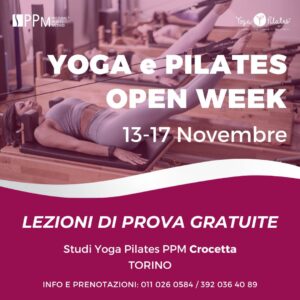 Siete tutti invitati a partecipare alla nostra nuova OPEN WEEK nello Studio Yoga Pilates PPM Crocetta in Via San Secondo 72 a Torino, dal 13 al 17 Novembre prossimi!